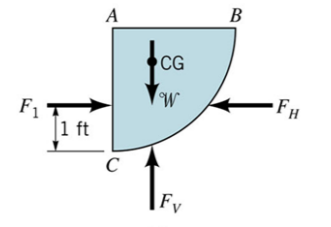 위 그림과 같이 탱크에서 곡선구간 BC와 수평면 AB, 수직면 AC로 이루어진 요소가 있다. 힘 Fh와 Fv는