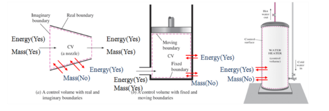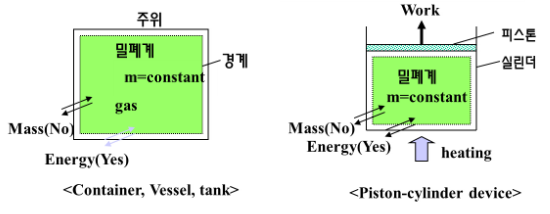 다시말해 질량의 출입은 없고, 에너지의 출입은 있다. 그리고 체적은 고정되어 있는 것이 아니다.