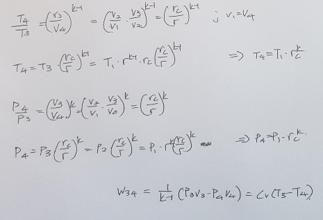3 -> 4 : 가역단열 팽창 (reversible adiabatic expansion, isentropic expansion)
