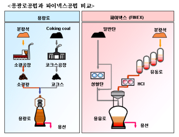 이를 극복하기 위해 세계 최초로 POSCO에서 파이넥스 공법을 개발해 냈다.